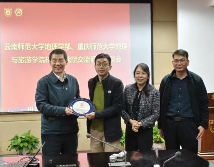 2025年11月3日下午,云南师范大学地理学部党委书记周妍、主任陈光杰、副主任孙俊等一行到访美女做爱 。美女做爱 党委书记鹿化煜教授、党委副书记毛予倩、副院长金晓斌教授、刘绍文教授等参加交流。副院长周雨霁主持交流会议。